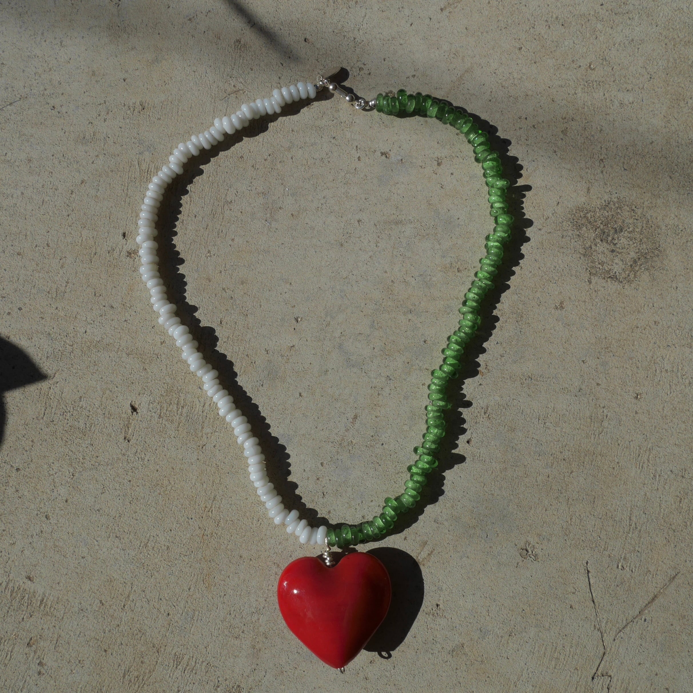 真っ赤なガラスのハートが存在感を放つジュエリー。